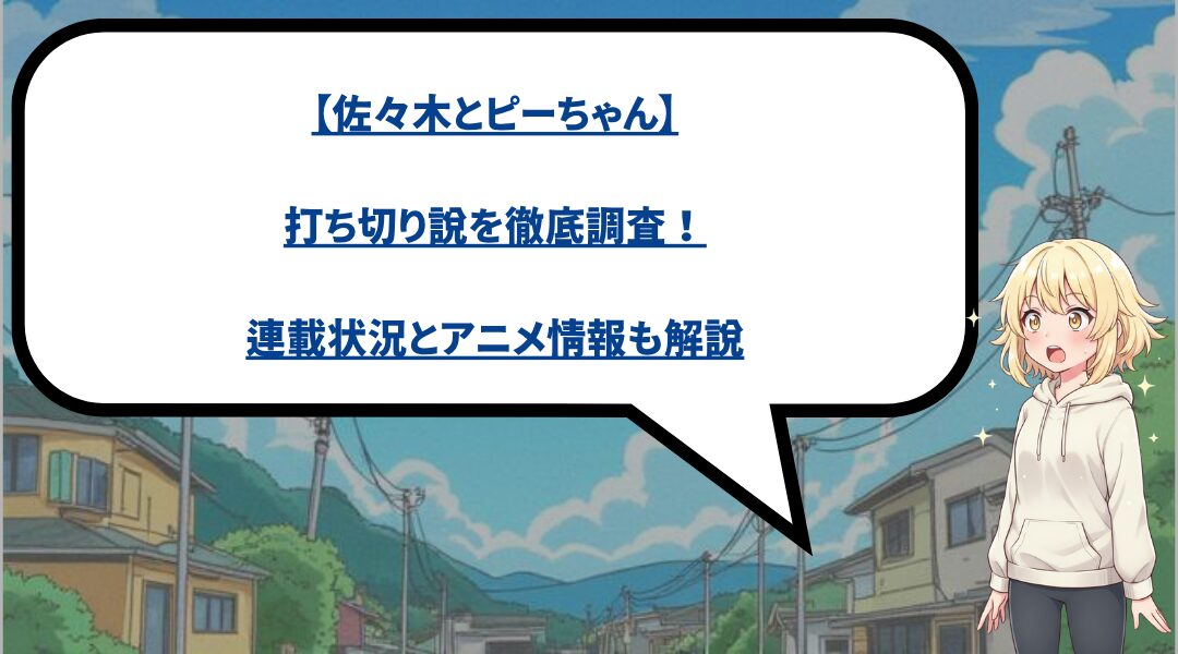 この記事は佐々木とピーちゃんの打ち切り説に関する正確な情報と今後の展開について詳しく解説しています。 ぜひ参考にしてみてください。